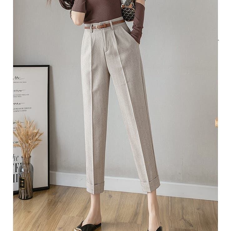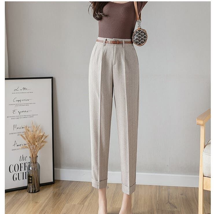 Tシャツやブラウス、ハイゲージニットなど、どんなトップスとも合わせやすい万能パンツ。