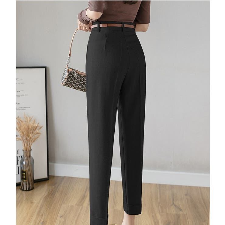 センタープレスを施した美脚見えパンツ